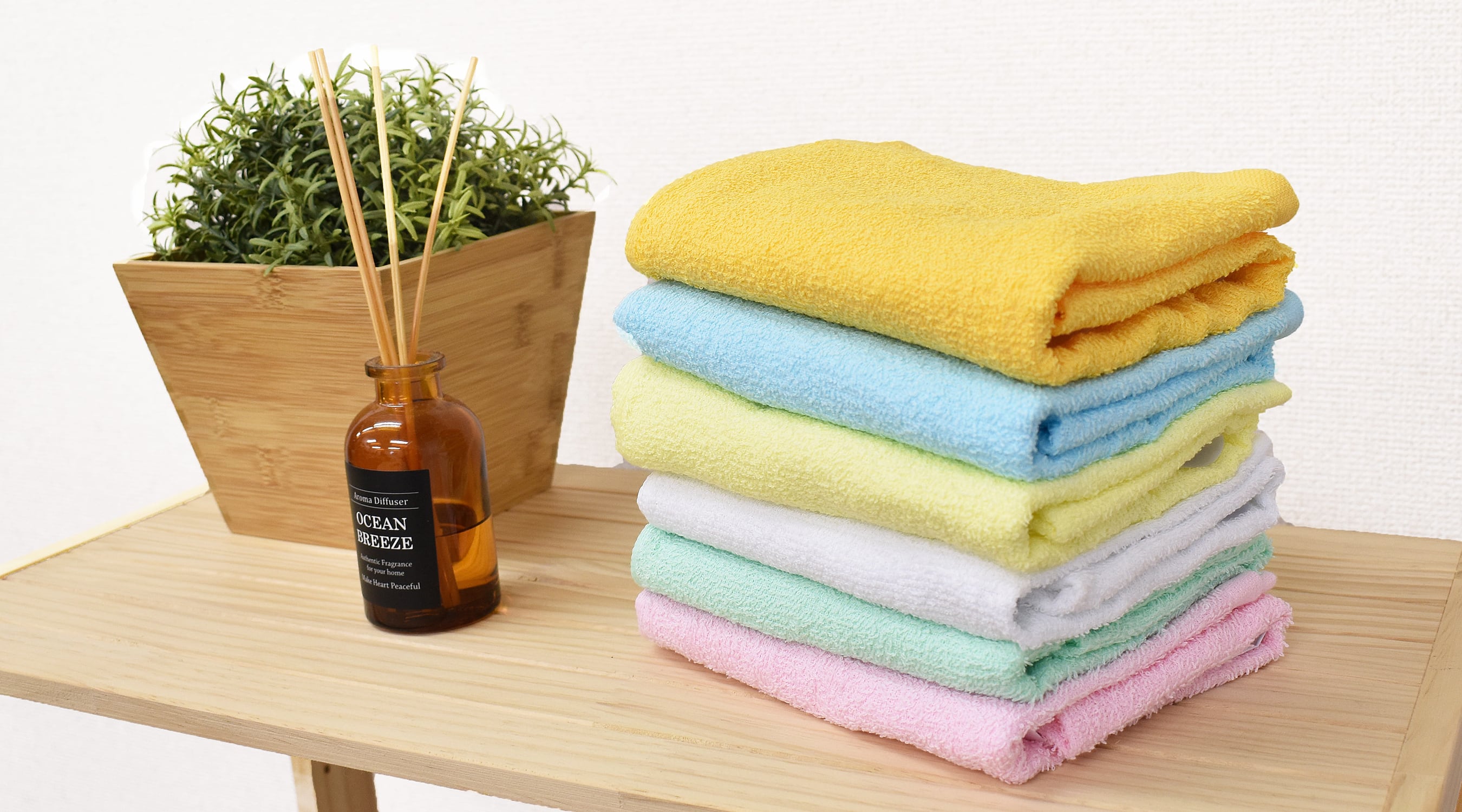 サイズ:(約) 35×86cm 素材:綿100% 【160匁平地付きカラーフェイスタオル】 薄手でかさばらないのでご挨拶や営業時の持ち運びにも便利。 綿100%で吸水性も高く、日常使いに十分な実用性。 【まとめ買い・大口注文OK】 企業様、店舗様のまとめ買いにも対応しております。 イベントや新年の挨拶まわり用もお任せください。 【カラー】 グリーン・イエロー・ブルー・ピンクの4色からお選びいただけます。 お得な粗品タオル・カラーフェイスタオルが登場! 34×86cmのサイズで、肌触りが柔らかく、吸水性抜群のタオルです。多くのカラーバリエーションからお好みの色をお選びいただけます。 ※ご使用前に必ず洗濯をお願いいたします。