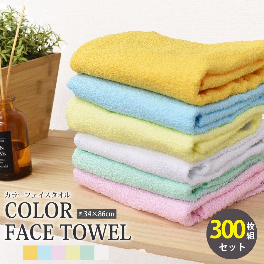 フェイスタオル カラー 業務用 激安 300枚 セット 大容量 徳用 まとめ買い 無地 綿 コットン 白 青 黄色 緑 ピンク ゴールド 綿100 コットン100% めん100 パイル 丈夫 安い 旅行 エステ 美容室 トイレ 幼稚園 保育園 粗品 ご挨拶 ギフト プレゼント 34 × 86cm