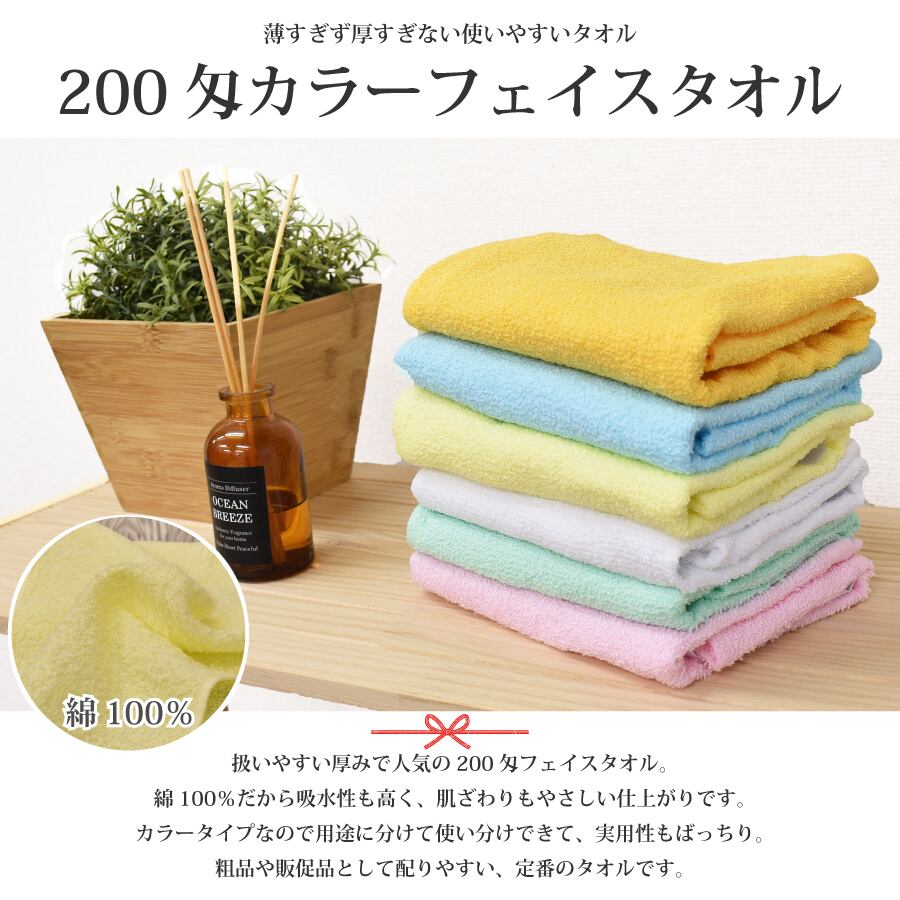 粗品タオル フェイスタオル 200匁 カラー 熨斗 粗品 タオル 業務用 のし 名刺入れ ポケット 1枚 ギフト 年末年始 営業回り ご挨拶 イベント ノベルティ 販促 記念品 薄手 無地 綿 コットン 綿100% コットン100% パイル 丈夫 単品 安い 34×86cm 激安 個包装 まとめ買い