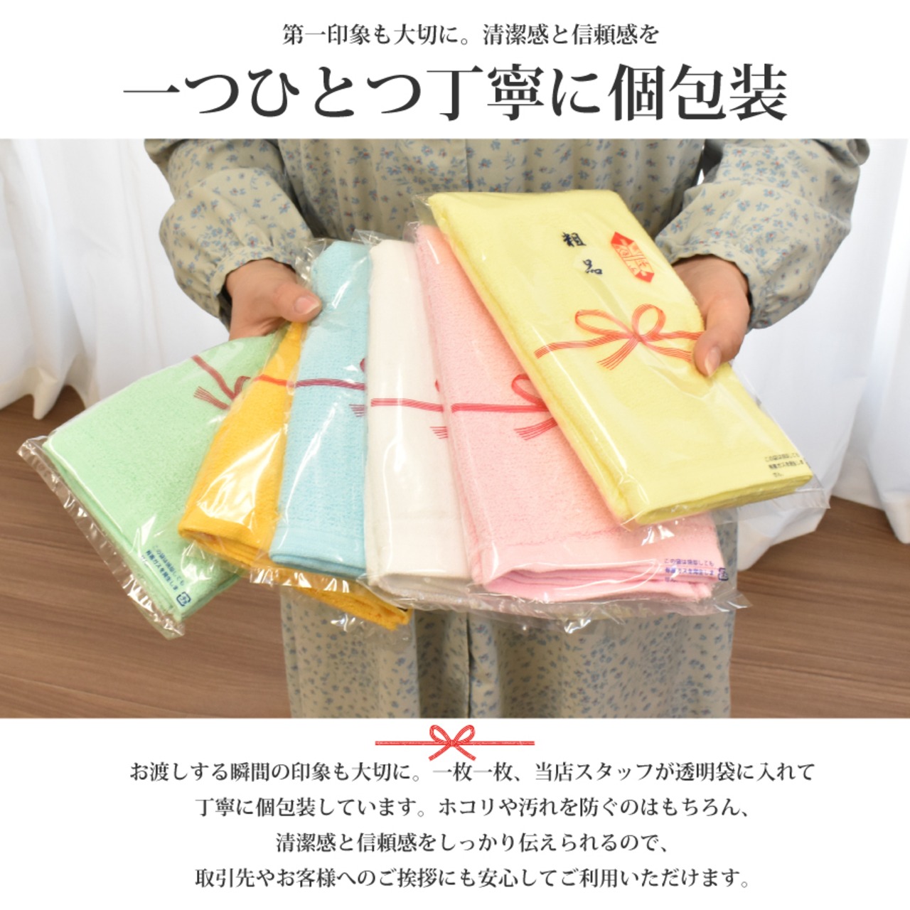 丈夫なパイル生地を使用しているため、洗濯を繰り返しても形が崩れず、長くご愛用いただけます。また、内祝い、結婚祝い、出産祝いなどのギフトにも最適です。のし付きで贈ることができるので、ちょっとしたご挨拶やプレゼントにも喜ばれるアイテムです。