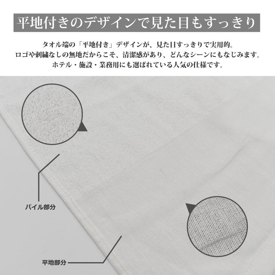 お得な24枚セットの平地付きフェイスタオルが登場しました!業務用はもちろん、ご家庭用にもピッタリな薄手デザインで、使いやすいサイズの34×86cmです。コットン100%のパイル素材を使用しており、肌触りが柔らかく、驚くほど吸水性に優れています。日常のあらゆるシーンで大活躍します。