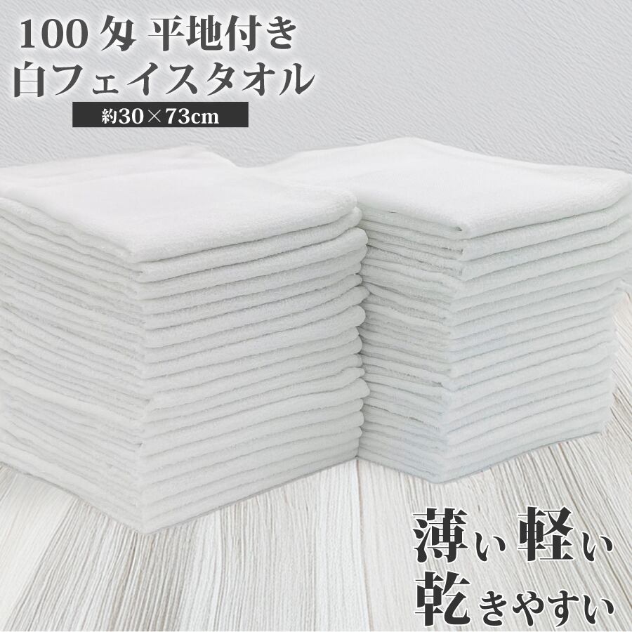 平地フェイスタオル 100匁 業務用 激安 フェイスタオル タオル 1枚 白 ホワイト 薄手 速乾 乾きやすい 軽量 無地 綿 コットン タオル 綿100% コットン100% 綿100 安い 単品 アウトドア 粗品 ギフト 30×73cm 使い捨て 掃除